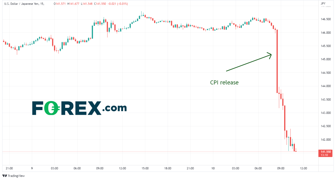 CPI数据发布后,美元自由落体式下滑,特别是美元/日元价格从146.22跳水至141.55