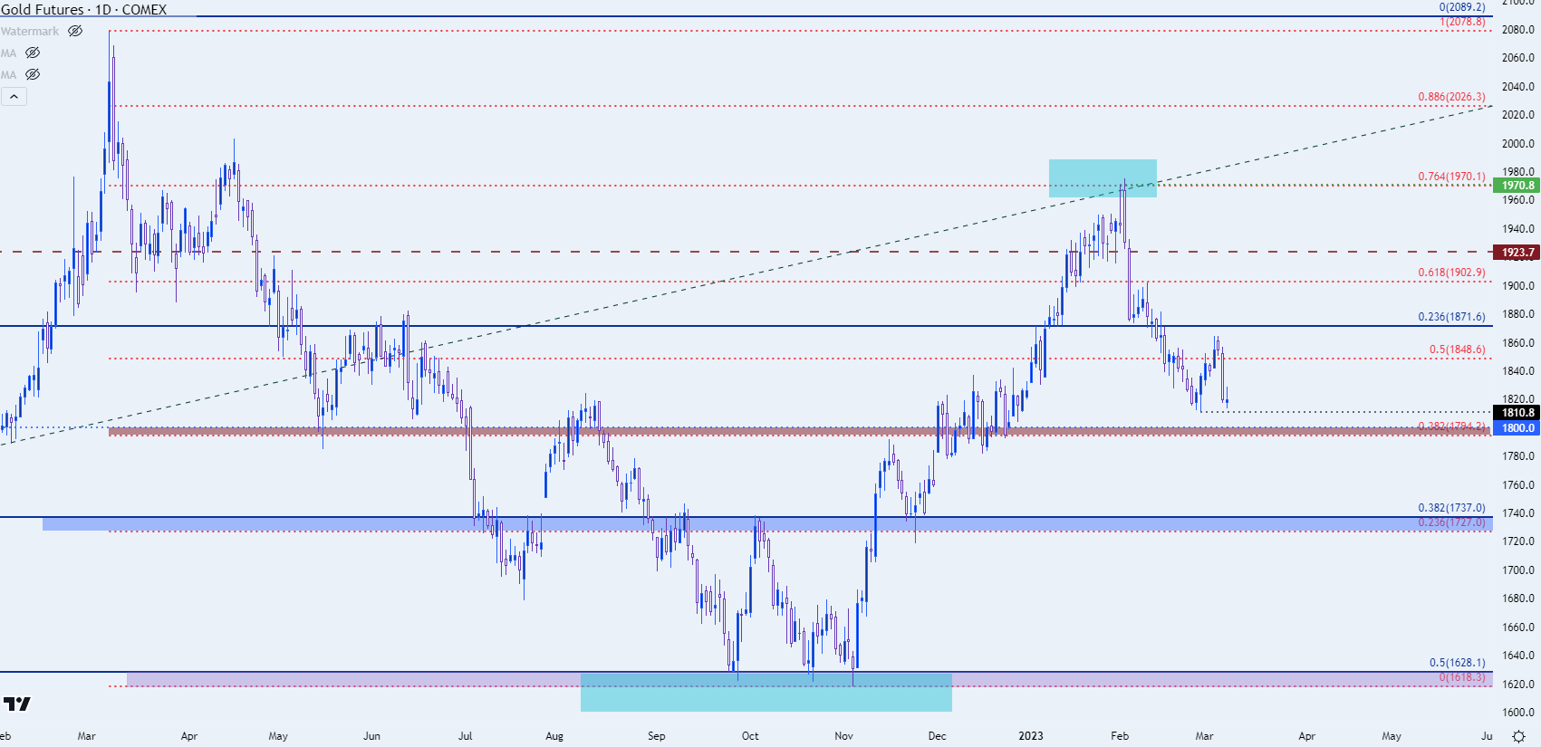 - 去年,金价再次失守2000美元之后,经历了长达6个月的困境。金价在3月份见顶,恰逢美联储这次利率上升周期中的首次加息,随着央行在夏季变得更加鹰派,金价持续下跌。