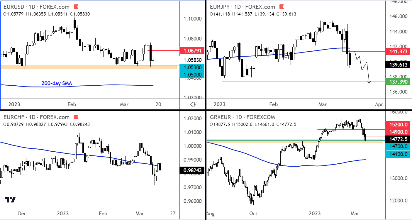 欧洲央行在上调50个基点后,令一些市场参与者感到失望。事实证明,尽管银行业遇到了各种麻烦,但央行还是坚持照本宣科,加息 50个基点。最初,欧元略有上涨,但随后暴跌。DAX指数触及周线和数月新低,然后从最低点反弹。密切关注欧元/日元,鉴于避险情绪,欧元/日元可能会跌至年内新低。