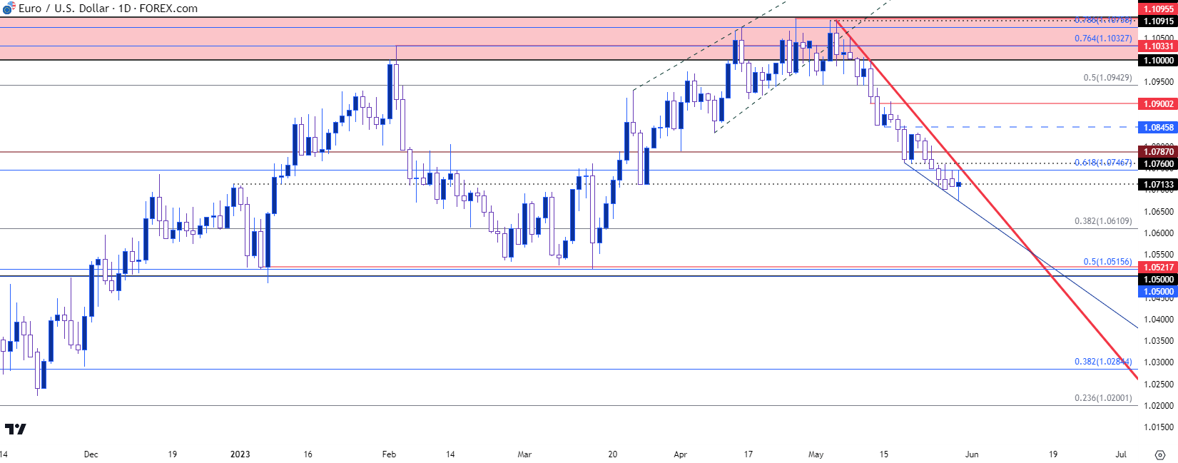 图表由James Stanley绘制,Tradingview上的欧元/美元